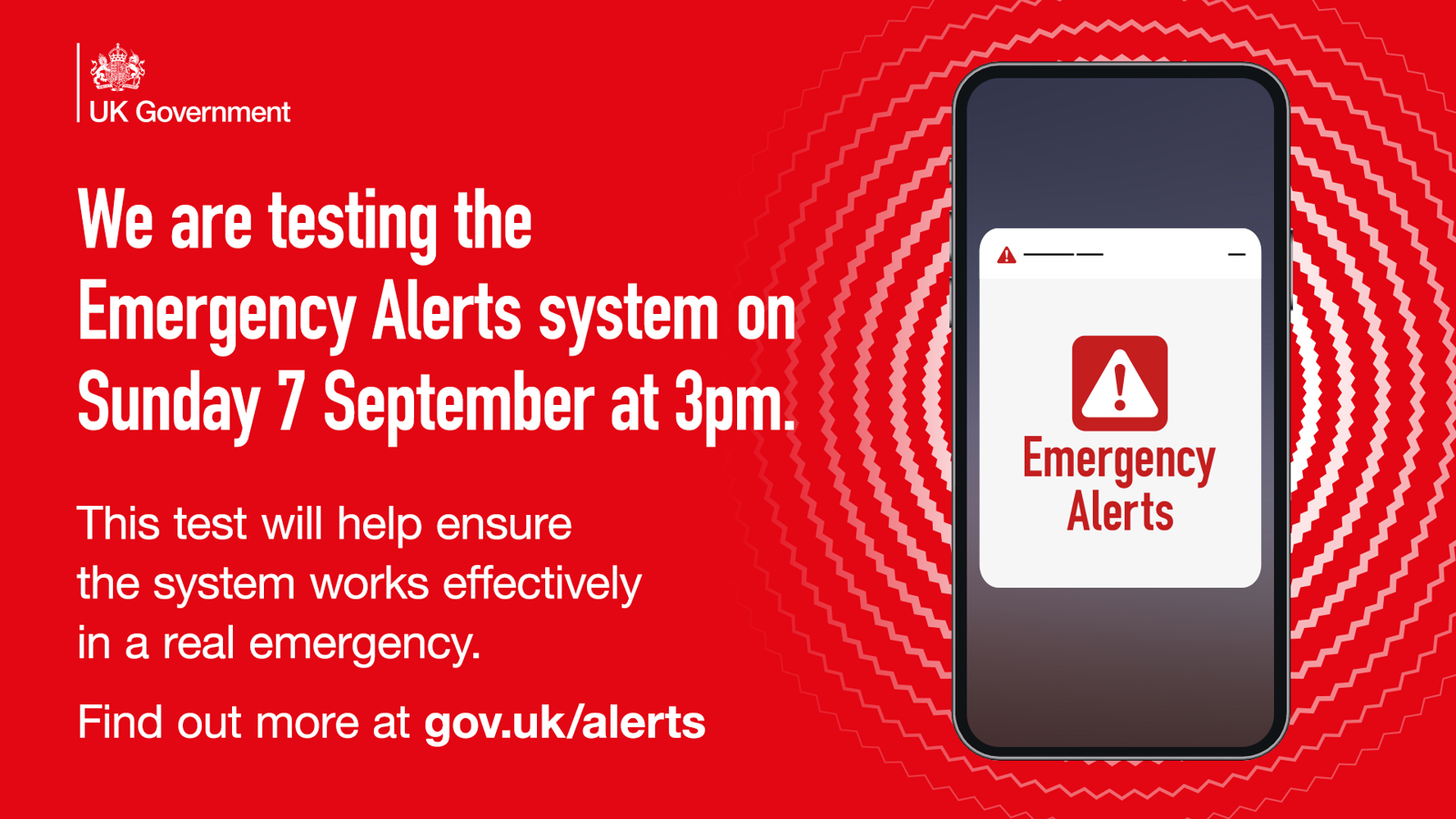 The UK government is testing the Emergency Alerts system on Sunday 7 September 2025 at 3pm.