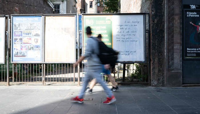 From nightclubs to shawarma shops, shop windows and outdoor interventions, Craig and Molly invited people to think twice about Sauchiehall Street. Working closely with individuals and groups, they honoured people's connection to the street by involving them in the production of each intervention, and giving them a platform for their voices and opinions to be heard. This in turn generated more questions and conversations with the passers by on the street experiencing the interventions in real time.