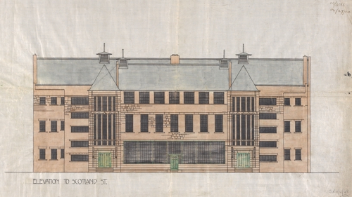 Take the city’s Mackintosh buildings. When I was growing up, the two I knew the best were those I visited on school trips. The magnificent Scotland Street School is likely to be the first Mackintosh building that many Glasgow school pupils of the past visited. As the Museum of Education, it hosted school visits for pupils to experience life in a classroom of yesteryear: my primary class enjoyed ours in a Victorian schoolroom. The building’s flood of daylight and use of nature imagery make it markedly different to any other school building of the period. In our collections, we hold the original architectural plans Mackintosh prepared in 1904 for the School Board of Glasgow.