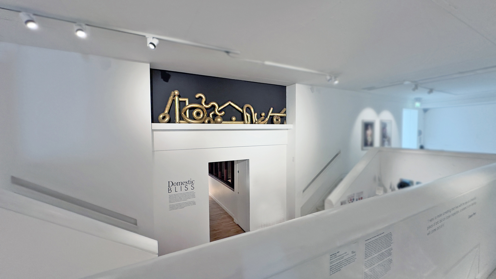 Old Money responds to the decoration of the GoMA building and encourages a renewed interrogation of its history. Taking the form of a new frieze for the interior of the Royal Exchange, it is formed of two elements: A plain shelf structure, carefully tailored to the simple circulation space of the 1996 redevelopment, which supports an informally arranged collection of metal-leafed ceramic forms. The title - Old Money - refers both to the history of the building and the entrenched privilege it represents, as well as reminding us that the meaning and value of coins is, like architectural styles, socially constructed, and can evaporate with changing times.
