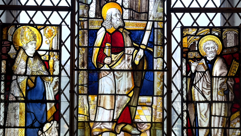 All three of these window panels containing saints date from the 16th century and were made in the Netherlands.