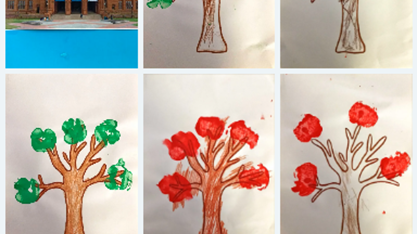 Pinch pots, apple prints and blown tree collages
