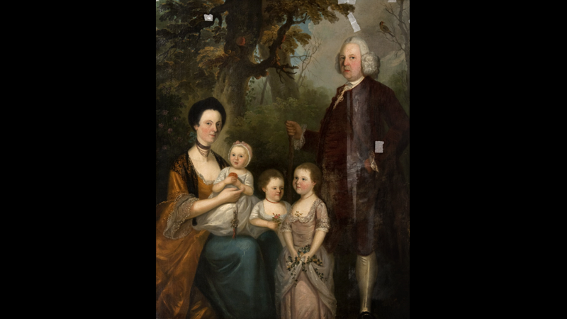 Glasgow Museums collections have many more portrait paintings from this period representing merchant families such as the Bogles of Daldowie, Lukes of Claythorn, Connells, Campbells or individuals including Lord Provost Andrew Cochrane. However, only the Connell (2609 and 2610), Glassford and McCall portraits show families, and married couples. Like the wedding portraits of John and Anne Glassford, the artist of the Connells and George and Mary McCall was probably Robert Harvie.