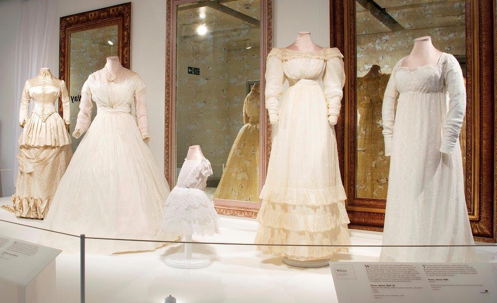 White dresses on display in 'A Century of Style: Costume and Colour 1800-1899'