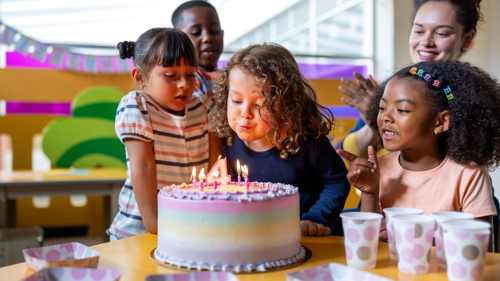 Party bags and cake are not provided but are allowed. No candles permitted.